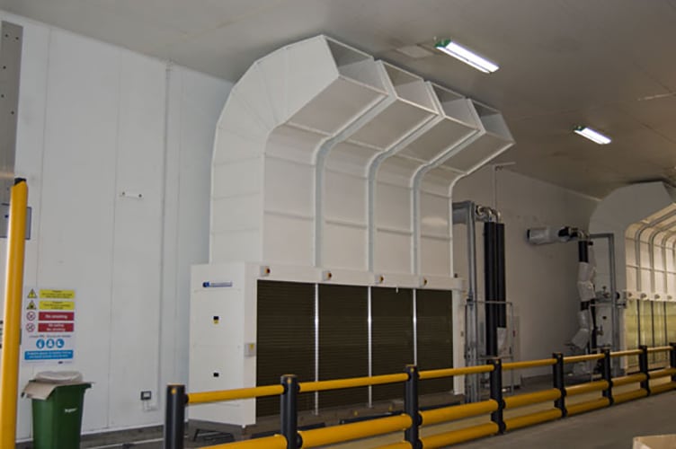 Part of the specialist scope of supply on these units was a bespoke ducted cowls, designed to follow the profile of the wall and ceiling above the coolers, to ensure a specific path of airflow around the store and maintain adequate working conditions for members of staff moving the products around.